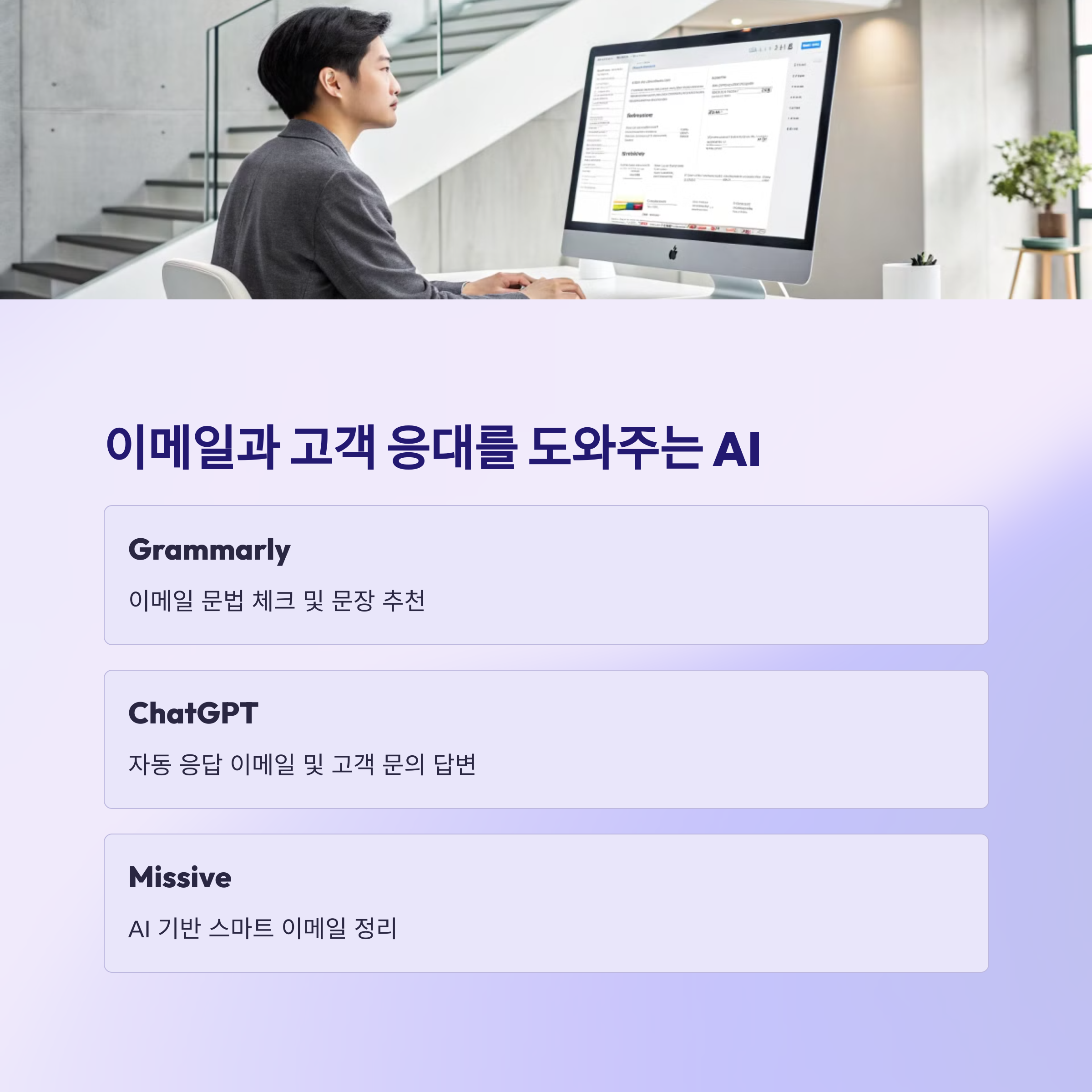 매일 반복되는 이메일 작성과 고객 응대에 시간을 빼앗기고 있지 않으신가요? AI를 활용하면 이메일 자동 응답, 고객 문의 대응, 메일 정리 등의 작업을 자동화할 수 있습니다.