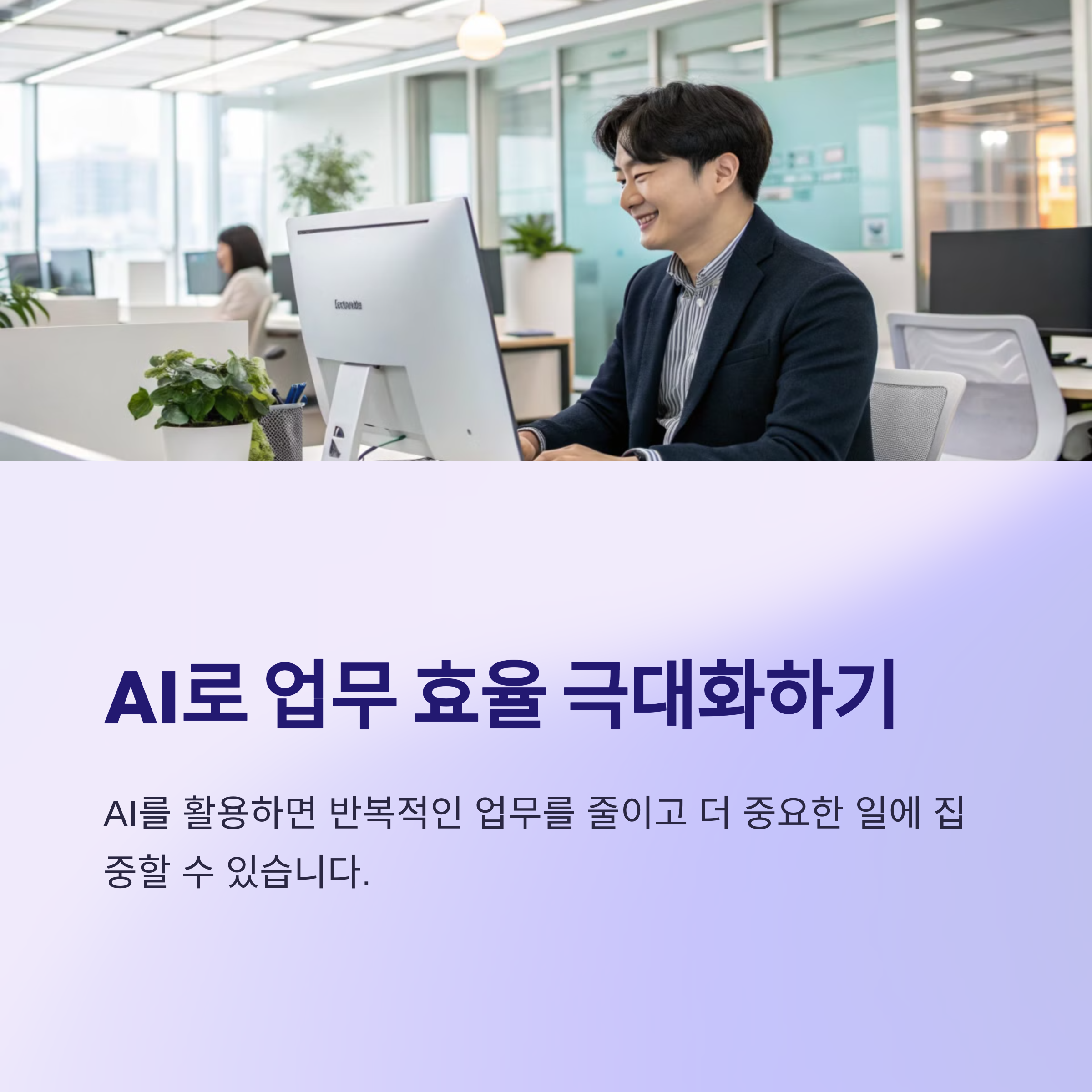 반복 업무에 지치셨나요? AI를 활용하면 똑같은 시간에 더 많은 일을 해낼 수 있습니다.