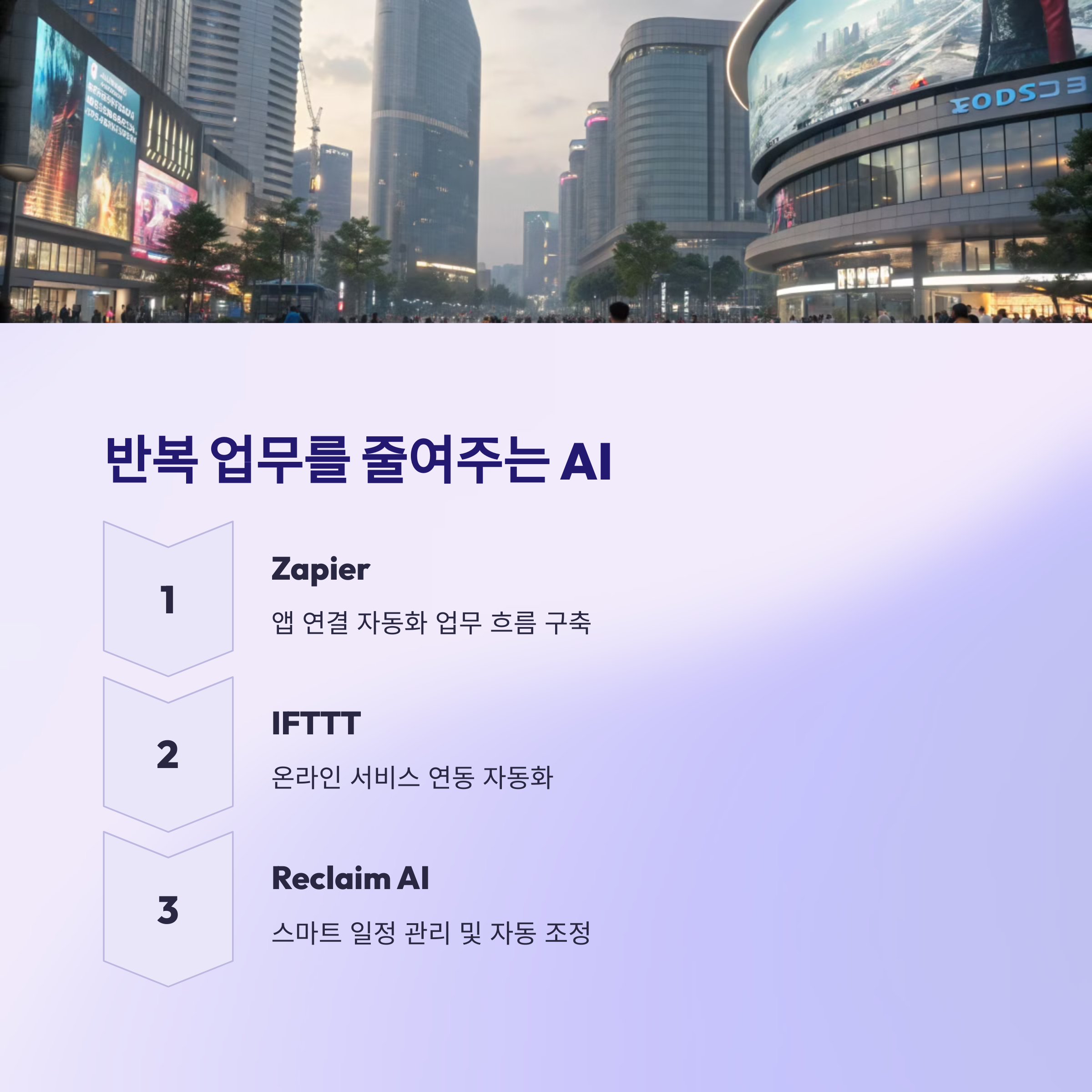 업무에서 가장 비효율적인 부분은 반복적인 작업입니다. AI 자동화 도구를 사용하면 이메일 정리, 파일 정리, 일정 조율 등 반복적인 업무를 자동으로 처리할 수 있습니다. 이를 통해 시간을 절약하고 더 중요한 업무에 집중할 수 있습니다.